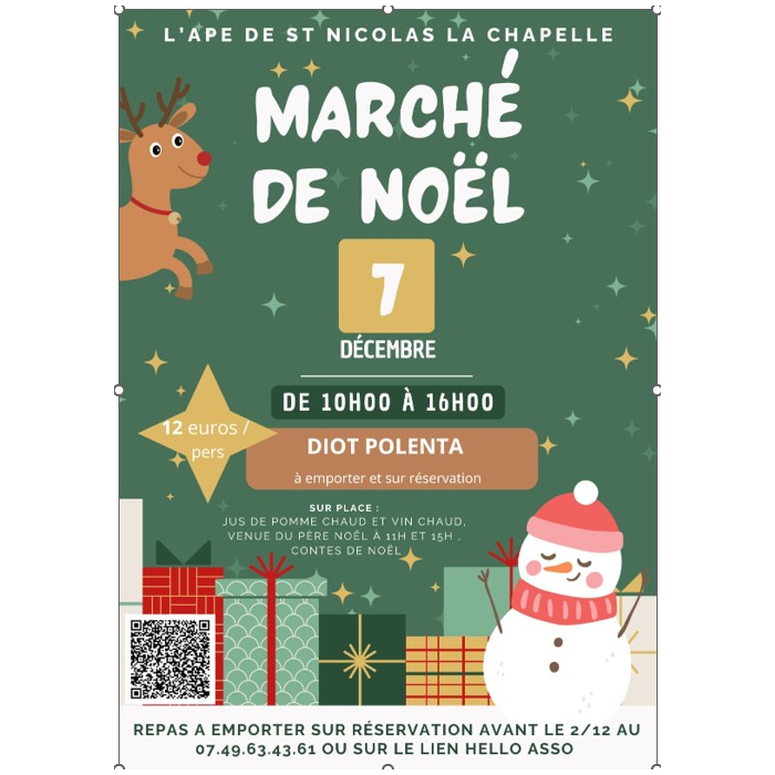 Un repas à emporter est proposé à 12.00 € : diot polenta sur réservation avant le 02/12/2025