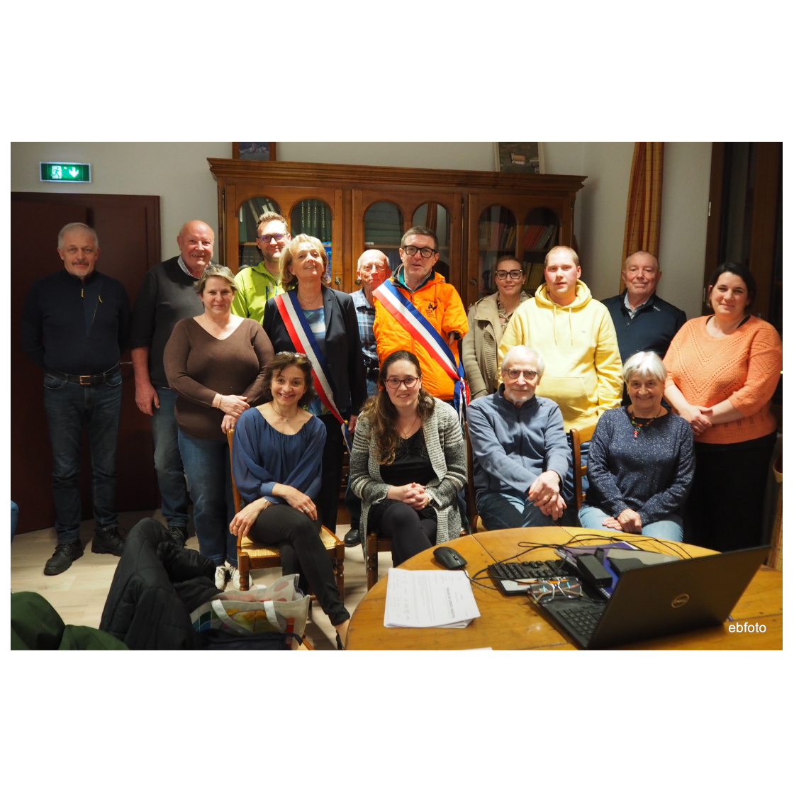 L'équipe municipale de gauche à droite : 3ème rang : Daniel OUVRIER-BUFFET, Jean-Claude BRUN, Nicolas BOISRAMÉ, Nicolas GERFAUD-VALENTIN, Elodie BOURGEOIS-ROMAIN, Hervé BOUGÉ,